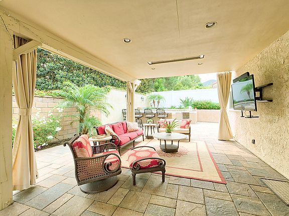 Welcome to this gorgeous Lynn Oaks home. With a fantastic proximity to freeways, shopping and dining, and walking distance to local parks and abundant hiking trails, this is the perfect place to spend time making beautiful family memories. With fresh paint throughout, this home has vaulted ceilings, updated dual pane windows, plush carpeting, scraped ceilings and triple zoned central heat and air. The main floor features separate family and living rooms, formal dining area, with a full bedroom and bathroom, perfect for a home office or your out of town guests. The updated kitchen offers a bay window, French doors, expanded counter space with granite counters and top end appliances. The upstairs has 3 spacious bedrooms, a loft area, 2 bathrooms and convenient laundry space. The main room has an open plan with a walk-in closet and expanded shower. The highlight of this masterpiece is the incredible entertainers back yard. You'll enjoy hours of entertainment lounging in your oversized 13 person spa, preparing meals using high end appliances at the chefs outdoor kitchen/BBQ area, hanging by the beautiful fire pit, or simply lounging underneath the heated patio cover while watching TV and enjoying time with family and friends.