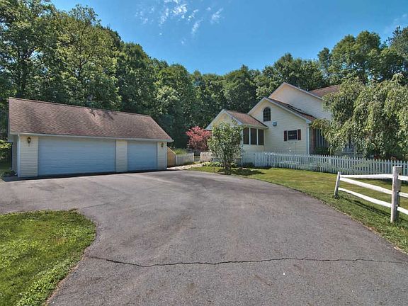 Country living at its finest. Bring your horses! This beautiful home sits on 6.35 acres of large pastures, w/a 4 stall horse barn w/heated tack room & hay loft. Sit back & relax on the front porch & enjoy watching the horses & take in the serene views. This spacious home has 3 levels of living. On the main floor is an open LR/DR area w/stone fireplace & cathedral ceilings on the DR side, a lovely country kitchen w/granite countertops, viking gas stove, SS appliances & a center eat-at island, 2 bedrooms, full bathroom, laundry room & powder room. Private master bedroom suite on the 2nd floor. Lower level consists of a Family Rm, 2 additional bedrooms, & a workshop. Other highlights include a 3 car detached garage, large back deck, backyard /chicken coup, raised garden beds & a potting shed.