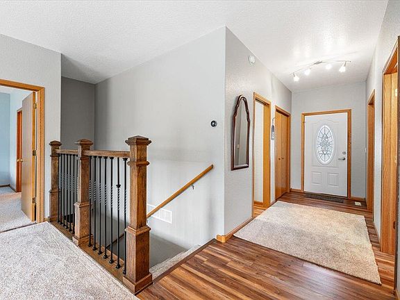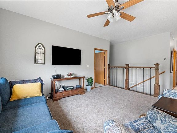 Listed by Sarah Peterka Keller Williams Realty-Black Hills Spearfish 605-661-2802. Enjoy breathtaking views of the Black Hills from this beautifully situated townhome in the desirable Vernon Heights subdivision in Sturgis. This spacious 3-bedroom, 3-bathroom, 2,248 square foot property boasts an open concept living area with high ceilings and abundant natural light. The main floor features updated flooring throughout, a large master bedroom with an en suite bath and walk-in closet, a second bedroom and bath, a laundry room. The upper deck is perfect for taking in views of the hills. The walkout basement offers a large family room, a spacious bedroom, a full bathroom, multiple large storage areas, and a versatile 4th bonus room ideal for an office. This move-in ready home is a fantastic opportunity you don't want to miss!