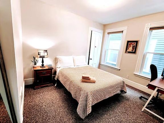 One bedroom still available in a fully furnished 3-bedroom luxury apartment in the heart of Yale on Mansfield Street, with brand-new central air conditioning, natural gas heat, in-unit laundry, free street parking, queen beds, and smart tv provided. Yale and downtown are very walkable. The apartment has solar panels, is fully insulated, and has a smart Nest thermostat, which all reduce energy costs. There is a shed in the back yard for secure and dry bicycle storage. Food trucks are around the corner on weekdays, and Fussy Coffee is around the block with amazing coffee and food. The street is safe and protected by Yale security 24/7. Leases until June or August are available, and shorter sublets are possible as well. The rent is $3525 per month for the whole apartment, or $1065 per month for just one room. The tenants pay for gas, electric, solar panel lease, and internet. The landlord pays for water, sewer, and trash. The apartment is currently vacant and ready for tenants. It is 1310 square feet. Pets are unfortunately not allowed. Tenants pay all utilities.
