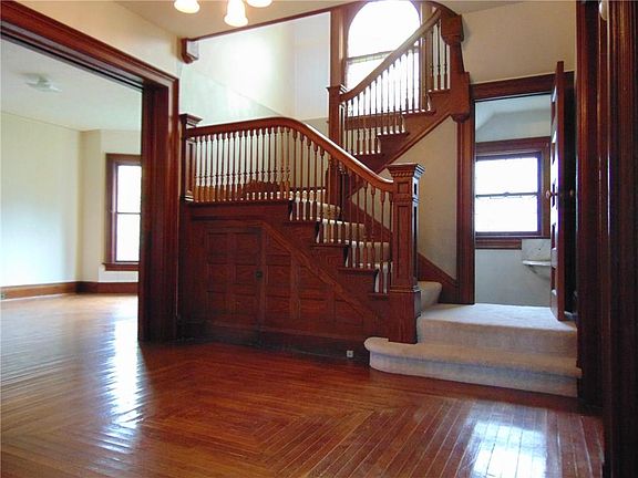 Beautiful circa 1901 Colonial in Geneva's Castle Heights Neighborhood. This unique property retains much of its original character, including hardwood floors, moldings, grand staircase, and fireplaces. Enjoy the 5 large bedrooms, which include two master suites with attached full baths. Downstairs features a large eat-in kitchen with wood-mode cabinets, formal dining room, parlor, large double living room with pocket doors, half bath, two enclosed sun porches, and a large indoor pool room with in-ground pool! Upstairs are five spacious bedrooms and three full baths. The large three car attached garage has unfinished space above that could serve as a great in-law apartment or added living space. Call today for your private tour.