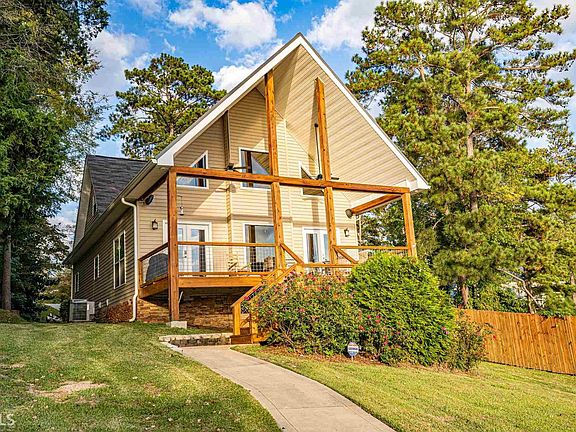 Come see this great modified A-Frame that's sooo convenient to restaurants and all things fun! This popular house plan boasts a large kitchen with walk-in pantry, master on main floor, laundry room, and two bedrooms and loft area upstairs for the kids to hangout. Home is located across from Little River Park Marina and on the main part of the lake. Enjoy sitting on the new deck and enjoy BOTH sunrises and sunsets, making memories in between. Home is being sold completely furnished, except for personal items, and watercraft can be purchased separately from the home.