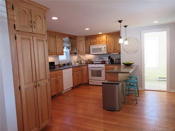 Looking for a charming home on a half acre in Manchester convenient to the highway? This home has the charm of yesteryear with all new amenities - completely remodeled 1876 colonial. Open floor plan allows for entertaining and flow throughout the 1st floor - great new kitchen with an abundance of cabinetry and counter space with both bathrooms recently remodeled. This home offers central air, thermopane windows, newer gas furnace, arch shingle roof, 1st floor laundry and a 2 car garage with additional storage area. Wonderful 15' x 8' three season porch off of the kitchen leads to a charming patio and a huge, completely fenced back yard. The fence has two removable sections to allow vehicles to drive in, with a pad behind the garage to park a trailer. The garage has its own workshop area and electrical panel, welding machinery outlet already in garage, the upstairs storage area is easily accessible and well lit. Over 200 bulbs, perennials, privacy trees, planted in fall 2020. Outdoor gardening shed along with a small vegetable garden completes all your gardening needs You can be in downtown Boston in under two hours, right off public transit and fifteen minutes to downtown Hartford. Your sure to fall in love with this well cared for home.