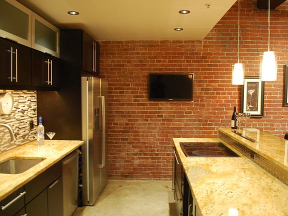 Located in the heart of downtown Lowell, this recently remodeled, unique 1378 sf Ayers Loft first floor is updated with modern high end appliances and a versatile 3 level floor plan. True loft feeling with 15 foot high ceilings, exposed brick, field stone and concrete floor. Luxury kitchen with Bosch appliances, induction cook top, Delta touch faucet, 9 ft granite bar, and 6 shelf double door pantry. Steel rod railing balcony overlooks sleek dining room. Custom cut out light boxes with dimmer adorn the stairway to lower levels. The bottom level houses the bedroom with two frosted glass wardrobes. Includes two bonus storage spaces. Walking distance to Tsongas, Lowell Auditorium, National Parks and Lowell Concert Series, coffee shops, martini bars, sushi, and jazz clubs. All residents can use Ayer Lofts gallery + website to showcase work.