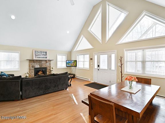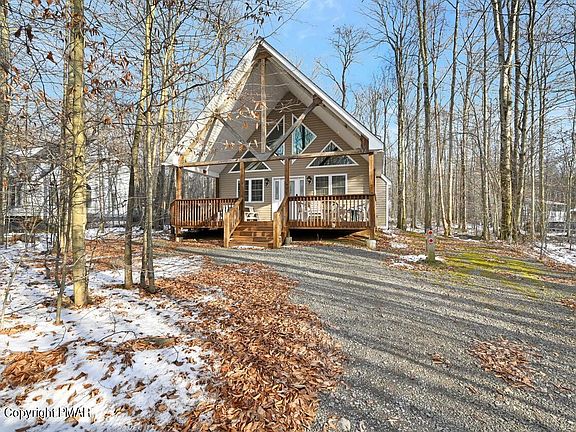 Well, hello gorgeous! Once you stop looking at that open frame, post & beam, wrap-around covered porch feast your eyes on a breathtaking mountain CHALET STYLE home located in amenity filled & STR friendly Arrowhead Lake! This 12 year young home is waiting its new owners to continue the love! Spacious and open floor plan with stone (gas) fireplace, kitchen island seating, dining area plus 2 bedrooms & bath on the first floor. The 2nd floor has a lovely loft, perfect for gaming or extra sleeping space and a MASSIVE primary suite, complete with full bathroom & soaking tub! You'll be all set as this home comes fully furnished! When not snuggled in your mountain retreat, enjoy what Arrowhead Lake has to offer with 2 lakes, 3 pools, 4 beaches plus organized activities for the whole family! Just 90 min from Philly, 2 hrs from NYC this community is centrally located to all that the Poconos has to offer from the crisp mountain air to fun things to do within minutes like downhill skiing, snowtubing, hiking, biking, whitewater rafting, casinos, water parks, and so much more. Call/text today for your tour!