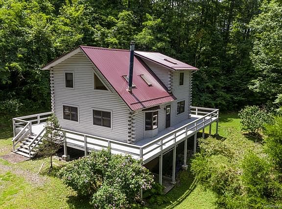 Spanning +-84 acres of prime mountain land with a 4 br log cabin, this beautiful property offers an exceptional value on the current market for a large tract with many improvements. The spacious cabin is in great shape, and features an open floor plan, master on main, great room with vaulted ceilings, woodstove, wrap around deck, abundant natural light, walk out basement, and more. A wide and established trail network provides access throughout the property interior. Land features include a mixed hardwood forest, springs, rock outcrops, diverse wildlife, mountain views, and a very private topography with ridge line property boundaries. Access is via gated private driveway that dead ends at the flat graded cabin area with detatched 2 car garage/workshop and plenty parking room. Listed more than $300k below tax assessed value, this property is priced with certain upside potential, and is ready for a new owner to enjoy the cabin and roam this splendid tract of Appalachian mountain land.