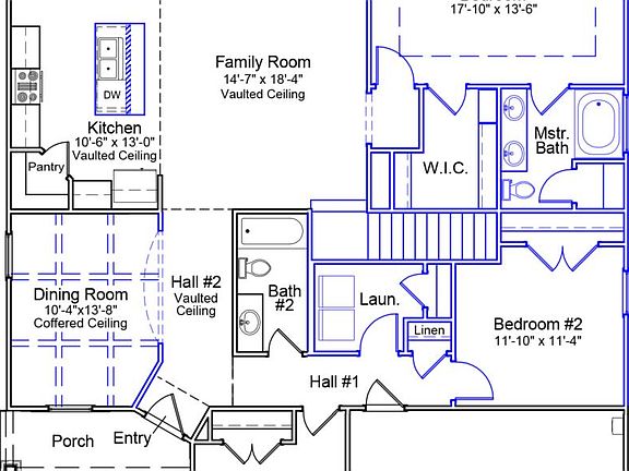 Carson C floorplan. Songbird Landing is conveniently located in the desirable Topsail school district and offers the best of both worlds with a quiet, relaxed atmosphere yet quick access to all Wilmington/Jacksonville have to offer. This charming one and a half story home welcomes you with gorgeous luxury vinyl flooring throughout the main living spaces, and vaulted family room opening to the kitchen and breakfast area for additional entertaining space. Featuring both luxury and functionality, the kitchen has quartz counters, upgraded cabinetry, tile backsplash, stainless steel appliances (including gas range), corner pantry, adjoining breakfast area and flat island. Home also includes formal dining room with coffered ceiling. The first floor primary bedroom features a stunning tray ceiling, walk-in closet and large tiled walk-in shower. The outdoor living area is complete with relaxing covered porch, suitable for use all year round, plus a fully sodded yard. Additional features include: gas fireplace, whole-house gutters, and so much more. HERS rated for energy efficiency.