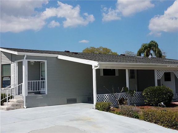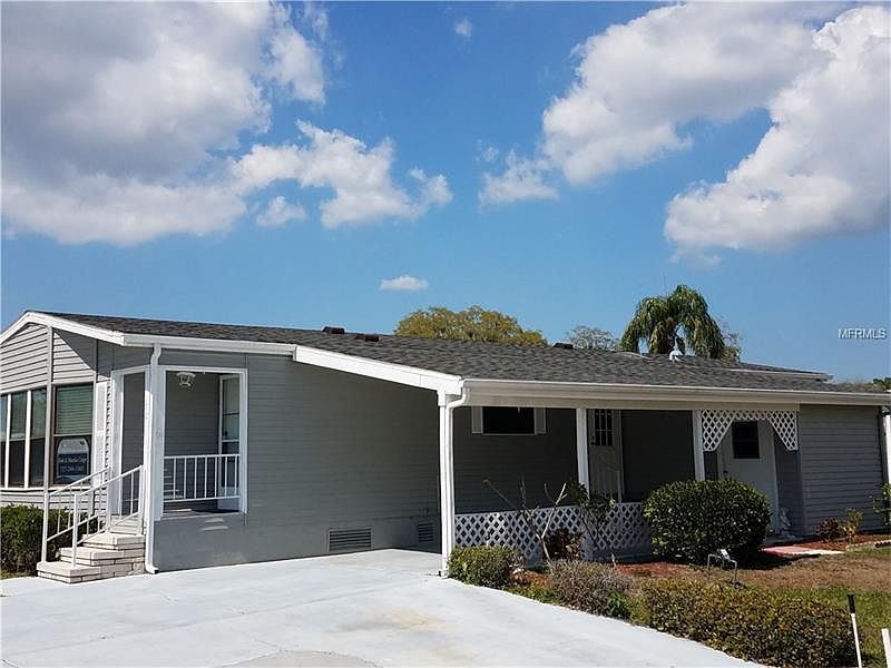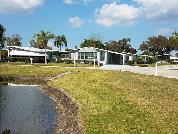 Delightful light and bright home on corner lot with scenic pond across the street. New roof March 2017 - new interior paint March 2017 - Spacious living room with wood burning fireplace features sliding glass doors opening to a 17x10 enclosed porch. Master bath features a remodeled tile shower plus a separate bath tub. Kitchen has a nice breakfast bar that opens to the living room. Attached carport with storage/workshop area has separate entrance in addition to main entrance to living room. Ridgewood Oaks is a wonderful, well maintained over 55 community with plenty of social activity, an active clubhouse/recreation building, tennis courts, a large community pool.