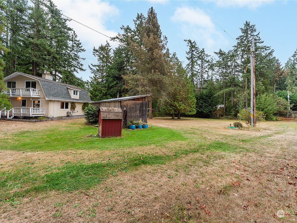A rare opportunity to own a 2 bed w/ 2 flex rooms and 1.4 baths totaling 1858 sqft home on 1.16 acres and multiple outbuildings. The home can easily be made your own with a little vision and effort. 70s retro offers solid wood cabinetry, plenty of natural light, cozy pellet stove and enclosed back porch for all year use. Sizable shop and storage area for all your projects and two additional outbuildings for more storage, yard and gardening tools. Plenty of level garden space. Located on quiet Nolton Rd on coveted Marrowstone Island and just down the road from Fort Flagler and Mystery Bay State Parks. Offered as-is please ask your agent about the septic prior to scheduling a showing.