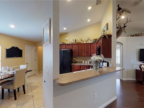 Book your appointment to come see this beautiful move-in ready Auburndale home today! The home is located in the quiet and serene neighborhood of Oak Crossing, on a large corner lot that's right next to a cul-de-sac, so there's yard to spare! Huge mature oak trees give lots of shade for the hot summers, and well kept flower beds give lots of great curb appeal. The open floor plan home has three bedrooms and two baths, with an eat-in kitchen and big breakfast bar. Wonderful high ceilings throughout the main living space give this home lots of natural light and an open and airy feel. The master bedroom has a walk in closet, and the master bath has dual sinks with a large garden tub and huge walk in shower. The roomy open living room has sliding glass doors that lead to a cozy screened in back porch that is perfect for spending afternoons with friends and family. A large laundry room is conveniently located off of the kitchen and attached garage. The home is equipped with the NEST system, a home sound system, and a new Trane 2.5 ton AC unit that was installed 9/11/18. Don't let this home slip by you, make your personal viewing appointment today before it's gone! Click the link for the virtual 3-D tour!