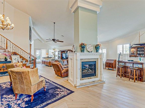 Gated GV remodeled custom home by Int Desigr: vaulted ceilings. Custom Brookwood 42in cabinets w/crown mld-chef's kitchen w/granite counter tops, SS GE Prof. Monogram 36in 6 burner range/Miele dishwasher, Avantium wall oven, pot filler, GE prof. hood vnt, instant hot at sink. Spa BR w/ Kohler fixtures/rain head shower & jets/wall mounted medicine cabinets. Double crown molding/7in baseboards. Oversized walk-in pantry: cabinets, shelves. Laundry: cabinets & sink. Custom handmade hickory & hammered iron staircase. Flooring: CA classics Medit, tavertine. real fine Fr. Oak 8in wide plank hwd, travertine & porcelain. Custom Thermaglow 2-sided fireplace in LV. Ceiling fans in all rooms, central vacuum. Balcony off MBR & 3 covered patio areas outside, refinished heated pool. Garage: Epoxy flr, insulated doors, workshop w/cabinets, shelve/storage. Whole house: owned water trtmnt system, 10 cam alarm system, replaced windows, new blown insulation in attic, house as been prof. sealed by Terminix