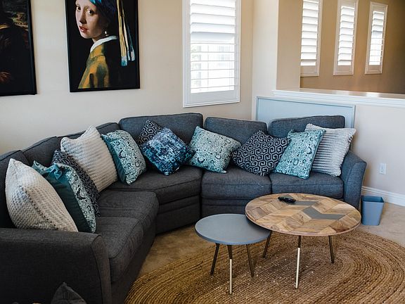 This is a lovely home with 5 bedrooms and 5.5 baths. Two-story home with a big court yard on a corner lot. Walking distance to Portola High School and Great Park Sports Complex. Top tier upgrades inside including wood flooring , carpet, granite counter top , back splash , and showers. Large center island and Western pocketing multi-sliding glass door leading to the spacious California room. Office/library on the first floor. Additional multimedia room, guest bedroom with full bath on the first floor. Four bedrooms on the second floor with a large loft leading to a balcony. Three-car tandem garage. Renter is responsible for water/ electricity/ gas/ waste/ wifi fee renter responsible for water/ electricity/ gas/ waste/ wifi fee