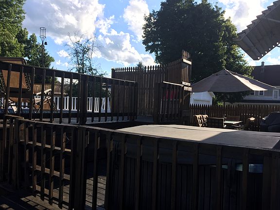Classic Colonial with hardwood floors through out & natural woodwork. Large living room that opens to the formal dining room with high ceilings. 1st floor office or bedroom ..Eat in kitchen w/ oak cabinets looks out to the newly renovated dbl deck,fully fenced in yard,2 car detached garage & above ground pool with new liner. This charming home has 2 staircase to the 2nd floor w/ sitting room,full bath ,large master bedroom ,1 huge bedroom with door separating it could use as 2 but would have to walk through one to the other .The exterior also offers a large driveway & enclosed front porch.
