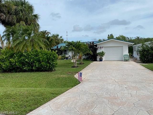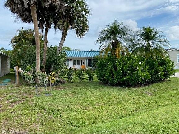 WATERFRONT HOME BETWEEN NAPLES AND MARCO ISLAND.RIVERWOOD ESTATES 55+ BOATING COMMUNITY. HOME ON WATER HOA $198. ANNUALLY. YOU OWN YOUR LAND. This waterfront lot alone is valued @ $200,000. per comparison sales of waterfront lots in last 6 months in neighborhood. Community boat ramp and dock. 20 minutes to the Gulf of Mexico or lunch by boat in Naples or Marco Island. This 2 bed/ 2 bath home with attached garage built in 1970 was the developers residence over 1750 sq. ft. under air including a private 140 sq. ft. studio. The structure is concrete block with Metal Roof ( not a manufactured home) Beautifully landscaped for total privacy. Stamped Concrete driveway and walkways. Paver patio overlooking boat dock & Henderson Creeks natural beauty. Open lay-out with water view from all common living areas. Interior walls painted in soothing color tones. Tile flooring throughout. Frigidaire Appliances, Maytag Washier and Dryer. New storm windows on Lanai. Generator & electrical. Trane A.C./ Air Handler 2021. New 30 gal. H2O heater. Termite Bond including lawn pods with Reliable Pest Control. New garage door. Pool membership included with this home. This home is stunning inside and out.