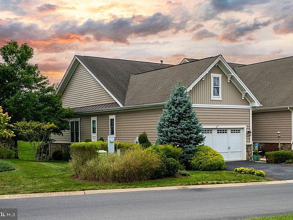 FRESH, NEUTRAL PAINT THROUGHOUT! Welcome to this gorgeous former model home boasting upgrades galore located in the coveted Lake Frederick 55+ gated community loaded with amenities! This stunning residence is perfectly positioned within walking distance of the clubhouse and restaurant, offering unparalleled convenience and a vibrant social life. With two spacious levels, this home features two bedrooms and three full bath. The beauty begins outside with a tailored stone and siding exterior, front porch entrance, 2-car garage, expert landscaping, brick patio, and a Trex deck overlooking lush common area. A bright open floor plan, gleaming hardwood flooring, high ceilings, custom moldings, 2 gas fireplaces, an intercom system, an abundance of windows, gourmet kitchen, and a luxurious primary suite are just a few features making this home such a gem! ****** An elegant foyer with custom crown moldings welcomes you home as warm hardwood flooring flows into the gourmet kitchen featuring pristine white 42” cabinetry, Corian countertops, and quality appliances including a built-in microwave, wall oven, and French door refrigerator with ice and water dispenser. A large center island with gas cooktop provides additional working surface and bar seating, as decorative tile backsplashes and recessed lighting add the finishing touch. The adjoining dining room offers space for all occasions and is accented by wainscoting and a pendant chandelier with ceiling medallion adds a stylish touch. Steps away, the family room beckons with a wall of windows that fill the space with sunlight, while a built-in bar and a cozy gas fireplace with marble surround serves as the focal point of the room. Here, a glass door grants access to the Trex deck overlooking open area and trees, perfect for entertaining and simple relaxation. The primary suite boasts a deep tray ceiling with lighted ceiling fan, hardwood flooring, a large walk-in closet, and a bay window that fills the space with natural light. The ensuite bath features a sparkling dual sink vanity, water closet, a sumptuous soaking tub, and a glass enclosed shower, the finest in personal pampering! The second bright and cheerful bedroom enjoys easy access to the well-appointed hall full bath, while a convenient laundry room with cabinetry complements this level. ****** The expansive walk-up lower level recreation room with beautiful luxury vinyl plank flooring and recessed lighting provides ample space for games, media, and with a 2nd gas fireplace is sure to be a popular destination. A spacious bonus room combined with a 3rd full bath provides versatile space to meet the demands of your lifestyle, while a large unfinished area provides loads of storage space. ****** All this in a peaceful residential setting with extra parking right across the street in a vibrant gated lake front community loaded with amenities including a clubhouse with restaurant, an indoor and outdoor pool, walking/nature paths, community center, bar and lounge, billiard room, party room, art studio, fitness center, tennis courts, pickleball courts, dog park, community activities, and so much more! Located in the foothills of the Blue Ridge mountains surrounded by natural beauty and conveniently located near shopping, dining, wineries, historical sites, parklands including Sky Meadows State Park, and Winchester, Front Royal, Stephens City. If you’re looking for an exceptional property combining comfort and style in a prime location, this is it!