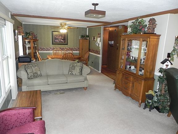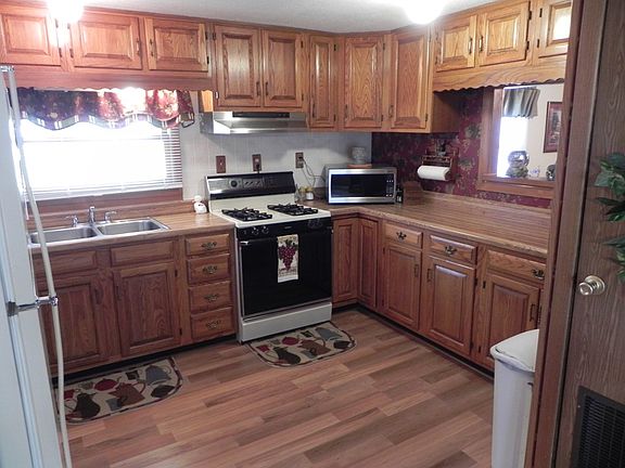 Nice 3 bedroom manufactured home on a half acre lot. 3 bedrooms, 2 baths with a 4 car detached garage. Partial basement unfinished for a storm shelter. Nicely updated and in move-in condition. Covered front porch, mature trees, yard sheds and under ground sprinklers on well. City water to the home.