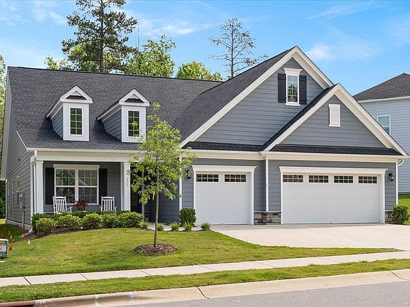Welcome to 172 Sea Foam Drive, a charming 3-bedroom, 2.5-bathroom ranch home located in Auburn Village Active Adult community. Less than 20 minutes from downtown Raleigh and only 4 miles from White Oak Shopping Center, this home offers the perfect blend of convenience and tranquility. Step inside to discover an inviting open floor plan, complete with a spacious office for added versatility. The gourmet kitchen is a culinary dream, while the custom closet in the primary bedroom is a must-see feature. Outside, the property shines with a rare 3-car garage and serene wooded backyard views. Relax on the front rocker porch or unwind on the screened back patio. Auburn Village offers resort-like amenities, including a beautiful Resident's Clubhouse with organized activities, a heated salt water pool, fitness center, and sports courts, providing an active and vibrant community lifestyle.