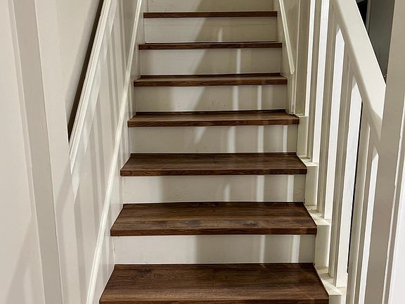 Stainless and white appliancesWood finished vinyl floors