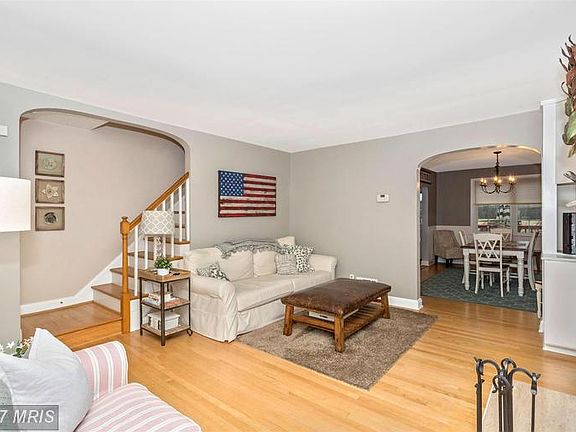 Beautiful updated townhome in Rodgers Forge! Gleaming hardwood floors, modern kitchen. Built in cabinets/shelves in living room. Vaulted ceiling in master bedroom, updated bathrooms. Fully finished lower level with exposed brick wall, bathroom, family room and more! Enjoy outdoor living with a large deck and huge stone patio. 2 off street parking spots and a storage shed. A must see home!