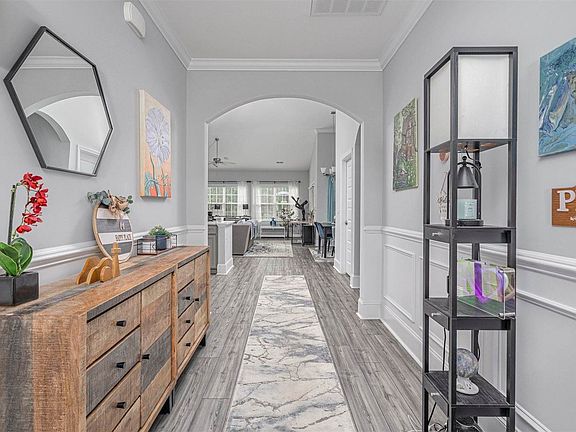 Welcome to this stunning one-story home, built in 2022, nestled on a premium lot backing to tranquil wooded green space in the desirable Sterling Bridge community. With great curb appeal, this beautiful home boasts a combination of brick and hardiplank exterior, offering both elegance and durability, and a very spacious floor plan. Featuring three spacious bedrooms and two bathrooms, it's perfect for comfortable living. Step inside to the open and airy main living area, where twelve-foot ceilings and luxury vinyl plank flooring create a stylish, easy-to-maintain space. The gourmet kitchen is a chef's dream, complete with a gas cooktop, wall oven, microwave, pot filler, and range hood. White cabinets and a striking gray island provide ample storage and prep space, while the stunning "Lazza" quartz countertops and spacious walk-in pantry elevate the design. This home offers a lot of upgrades. The kitchen seamlessly flows into the family room and casual dining area, making it ideal for entertaining. The primary suite offers a peaceful retreat, featuring boxed ceilings and a luxurious 5' x 5' tiled shower. The oversized walk-in closet provides plenty of storage. For outdoor enjoyment, relax in the screened porch with a cozy gas fireplace, or entertain on the 210 sq ft patio overlooking the fenced backyard. As an added bonus, front yard maintenance is included, ensuring your home always looks its best. The Sterling Bridge community offers wonderful amenities, including a refreshing pool and clubhouse. Plus, this home is conveniently located within minutes of Lake Murray, the vibrant Town of Lexington, with its great dining options and shopping, incredible parks, and the lively entertainment at the Icehouse Amphitheater. This home truly has it all – modern luxury, serene surroundings, and a prime location! Disclaimer: CMLS has not reviewed and, therefore, does not endorse vendors who may appear in listings.