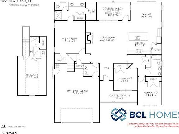 The Lauren floor plan features 2459 sq ft with 4 bedrooms and 2 bathrooms. Covered 19'x6' front porch as you approach this home. Once inside this open floor plan layout has 3 bedrooms on the first floor and one bedroom over the garage. Kitchen features stainless steel appliances, pantry kitchen island with bar seating area and granite countertops. Laundry room on the first floor off the two car garage. The primary bedroom is located at the back of the home and has a full walk in closet, dual sinks and walk in shower. The additional two bedrooms are on the other side of the home and share a full bathroom. Upstairs over the garage is a the 4th bedroom. Covered back porch overlooking the large back yard. Discover Brick Chimney Landing today. Future boat ramp access to the river, pool and generous half acre plus lots to choose from. Buyer can pick all selections for this home. Schedule an appointment today to learn more.