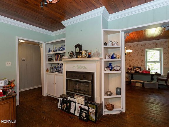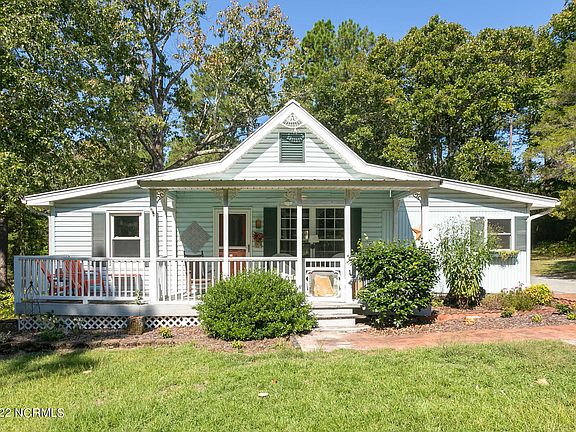 This charming cottage on a beautiful lot in a secluded location in West End has such wonderful potential with some TLC! This home has rustic pinewood floors and ceilings and crown molding throughout. The living room has a gas log fireplace and ceiling fan. This kitchen has white wood cabinets, tile countertops, stainless steel appliances and double stainless steel sink. There is a spacious laundry/mudroom off the kitchen as well as a large office. A new gravel driveway with guest parking area has been recently installed. A cozy front porch with a small side deck is perfect for enjoying the peaceful and serene setting and there is also a nice storage shed in back.