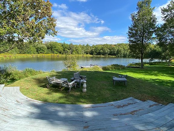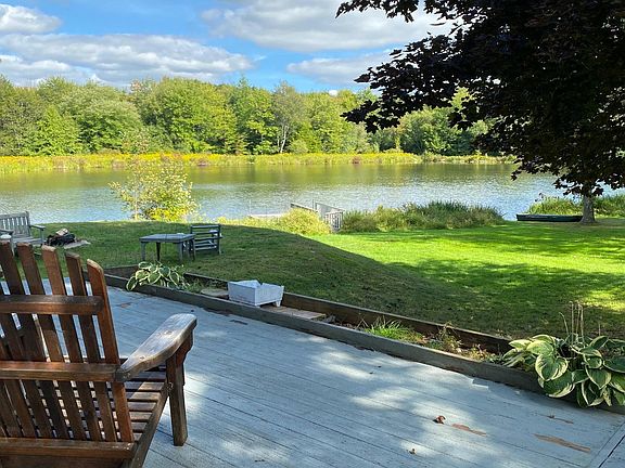 OWN THIS PRIVATE ESTATE featuring 35 Acres and your OWN 5 ACRE LAKE. The home is a Prow Front Chalet with an impressive & dramatic living area with a high cathedral ceiling and a wall of glass overlooking your PRIVATE LAKE. This spacious home features 4 bedrooms, 4 baths with 3 bedroom suites. Updated kitchen with granite counters and Stainless Steel appliances, plus a large breezeway connects to a 2 car garage w/ attic storage above. Relax or entertain on the Huge deck and swim or fish from the dock. Truly a unique property.