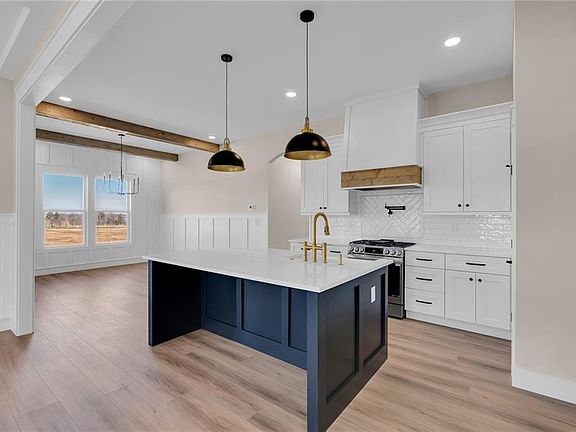 Built with outstanding quality and attention to detail, this home features gorgeous flooring, stunning countertops, beautiful trim work, and high-end fixtures that create a warm, welcoming, and luxurious feel. As you step inside, you’re greeted by an open-concept living area enhanced by a coffered ceiling and a striking floor-to-ceiling stone fireplace.