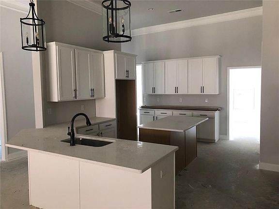 - Kitchen Features: Breakfast Bar, Eat-in Kitchen, View to Family Room, Stone Counters, Kitchen Island, Pantry Walk-In, Cabinets White