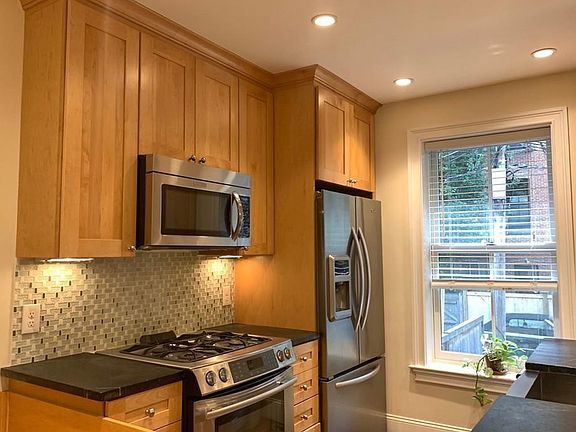 Beautiful, totally renovated two bedroom duplex, located on tree lined quiet side street with private under stair entrance. Master bedroom suite with all stone bath and large closet with custom built-ins. Second bedroom has adjacent full bathroom. The kitchen is complete with soap stone counters, stainless steel appliances and a gas range. Hardwood floors are throughout, California closets, laundry in the unit, additional storage and a private patio. Heat & Hot Water Included