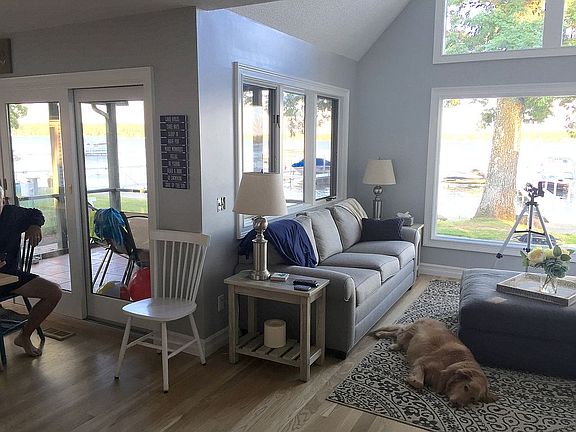 CLEAR LAKE BEAUTY AT ITS BEST: This year-round lakefront home features all the comfort and gorgeous view buyers have been searching for! In addition to the level lot and sandy beach, amenities include a main level living area, walk-out screened-in porch, bedroom, bathroom, den and utility room while the upstairs features two additional bedrooms, another bathroom and an open loft for extra storage.