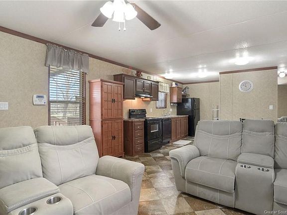 Wonderful 5 year old Starlink mobile home is on a cement slab and measures 16' x 60'. So many extras: HVAC system is upgraded Arco Air for maximum dependability. Solar screens also help with energy efficiency! RV plug-in on site. Sewer for camper is present, too. Lot measures 100' x 300' and is in flood zone X(the good one). Front porch is covered and is ready to welcome you home. All measurements are more or less.