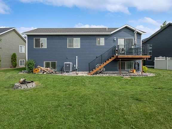 Opportunity is knocking! Take a look at this spacious, beautiful home in a great Kalispell neighborhood. Over 2,500 sq ft with 5 BR, 3 BA on two levels. Vaulted ceilings, spacious kitchen with island and pantry, dining opens to a new low maintenance deck. Surround sound and new carpet. Master bedroom with private bathroom and walk-in closet. Large family room with a wet bar in the daylight basement. Landscaped with underground sprinklers, garden areas, big back yard, underground pet fence, heat pump for efficient heating/cooling. Built-in shelving in the garage for those hobbies. There are parks with playground, basketball court, pickleball/tennis court and walking paths close by. Friends & family can gather here and enjoy the central location making it easy to visit all things the Flathead Valley has to offer year-round (lakes, woods, Glacier Park, ski resorts and more!). Call Teri Bjornrud (406) 261-6809 or your real estate professional. Pot rack, sound equipment and electric dog fence control box/collar are included.