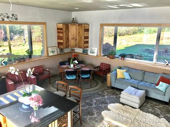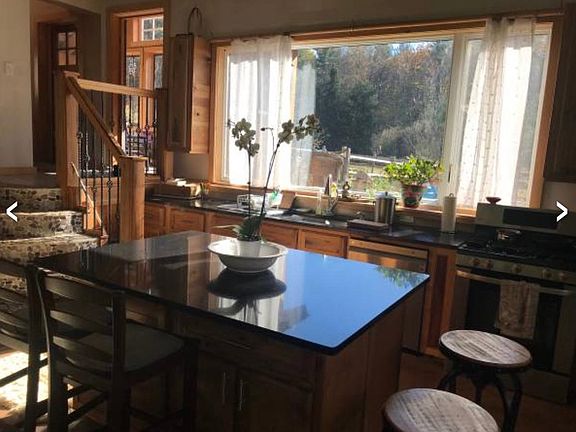 Beautiful custom built home, sits on 4 acres with fruit trees and gardens. The home boasts a beautiful open concept living area with a large kitchen and wood burning stove on the main level. One bedroom and full bathroom on the lower floor with a another bedroom and full bathroom on the upper level. There is a loft with a third sleeping area upstairs. The home has two brand new decks facing the sunset and is in walking distance to Fiske Pond. Fully Furnished and available to rent until June, 2023. Renter is responsible for heating costs and electricity. No smoking in the home.