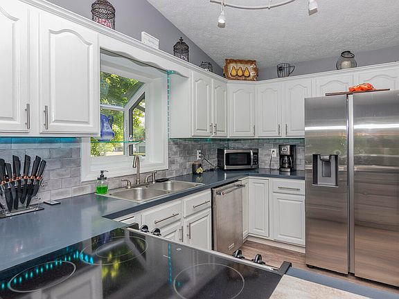 This 5 bedroom, 3 full bath home is located on 14.23 Acres and at the end of a dead end street. This ranch offers plenty of space to roam with the finished walkout level offering a large family room and kitchenette. An ideal set up for an in-law living quarters too. You will love the peace and wild life just outside your door. The 30x48 barn offers plenty of extra storage. Recent improvements are roof, siding, gutters, carpeting/flooring and more.