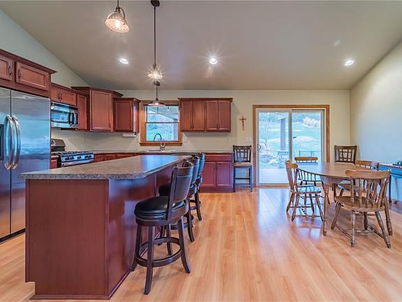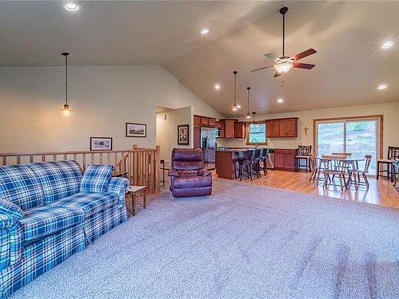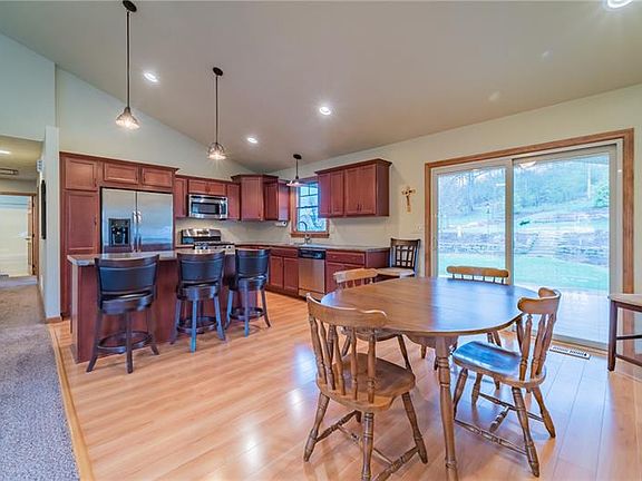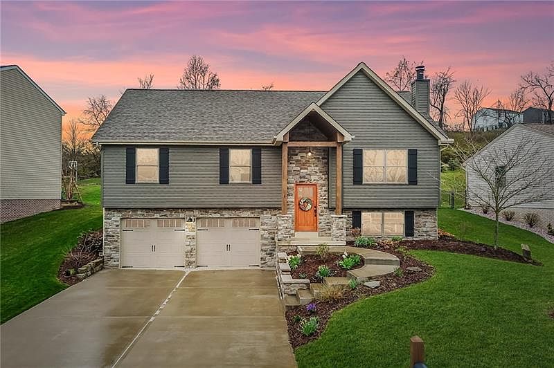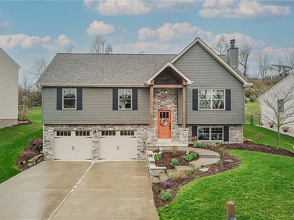 PREPARE TO BE WOWED!!! This amazing Craftsman Style home is NOT your typical split entry! The expert landscaping and uniquely charming front porch greets you as you enter this wide open living space with soaring cathedral ceilings and center kitchen island with breakfast bar that overlooks all the action! This spacious gourmet kitchen with stainless steel appliances & upgraded cabinets will make you embrace your inner chef while the oodles of natural light will draw you to this amazing covered deck & parklike backyard. The spacious owner's suite will pamper you with a walk in closet & oversized tile shower with a rain shower head and built in seat. The extra height in the lower level boasts a room suitable for all of your gameday parties with a cozy wood burning fireplace and a home theater system with built in projection screen. Other features include 6 panel pine interior doors, concrete driveway, finished laundry area and easy access storage in both the attic & under the steps.