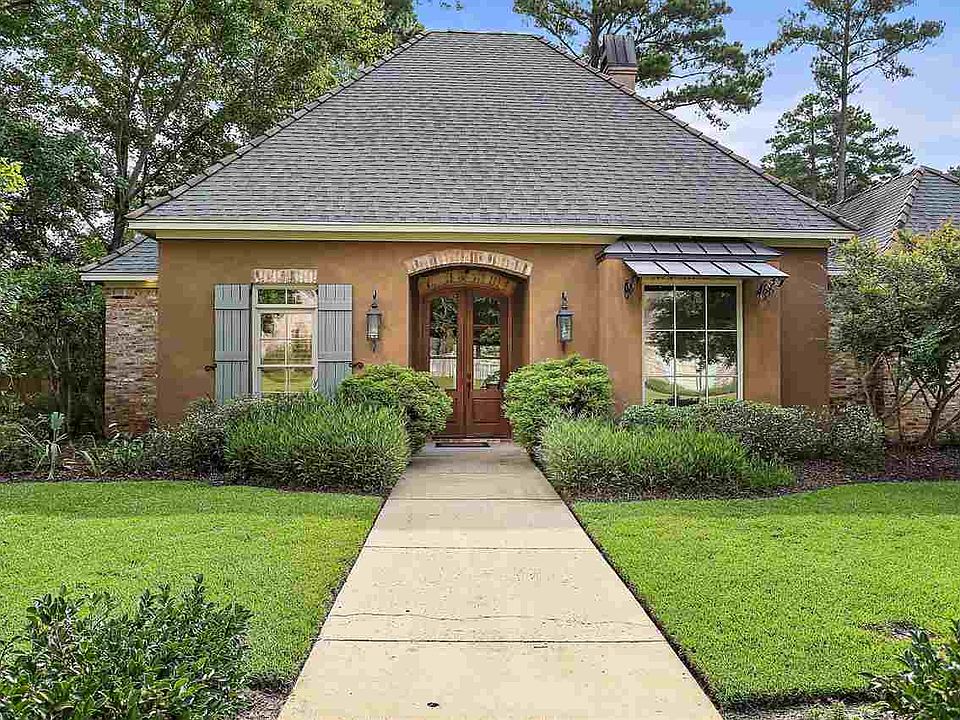 REDUCED! Private office with access to the courtyard balcony. One of a kind home in gated Wright's Mill of Madison, MS. Custom designed with 4 bedrooms, 4.5 baths, an office and a true New Orleans style courtyard complete with brick walls, iron gates and a balcony all shaded by trees and greenery. Moss lined stones lead you from the covered back patio to the iron gates and on to the private back yard. With entertaining in mind, the kitchen has a huge granite topped island with an inset sink and an ice maker. The butler's pantry with a bar and Viking wine cooler connects the kitchen and the formal dining room. Other Viking appliances include a 4 burner gas cook top with a griddle, the refrigerator and the double ovens. This open kitchen plan extends to a breakfast/dining area and a keeping room with a fireplace and an exposed Old Chicago brick archway leading to the great room. These rooms are lined with windows overlooking the courtyard. The foyer is framed with cedar beams in the ceiling and walls. Every bedroom has a private full bathroom and there is a half bath for guests. Downstairs, a short hallway leads to the master bedroom suite with a window framed sitting area. The Master bathroom has travertine counter tops, jacuzzi tub, separate tile shower and a huge walk-in closet. There is another bedroom with a private bathroom downstairs. Upstairs you will find a home office with built-in book shelves and two bedrooms with private bathrooms. Each of the upstairs bedrooms and the office have access to the balcony. Plantation shutters throughout the home add to the fantastic curb appeal. Located on the corner of a cul-de-sac, this home has a clay tile trimmed roof along with the other homes in Cardigan Ct. This home is just a short walk from the community pool with a pavilion and the playground. Wright's Mill is a gated subdivision with walking trails that connect to the Natchez Trace walkway.