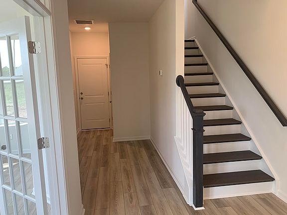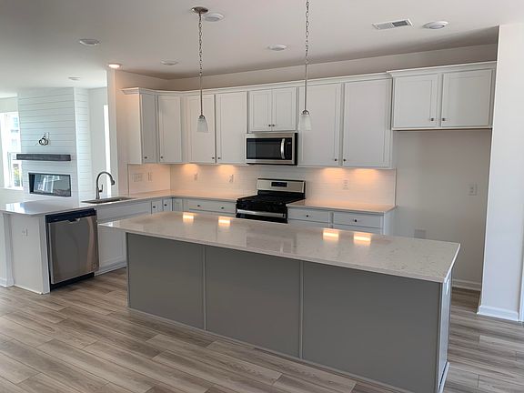End unit with pond views, 8' extension. This three story townhome features a rear loading, 2 car garage as well as a study and full bathroom on the first level. LVP flooring throughout the first two levels. Second floor houses the family room and kitchen, with balcony access. Stunning kitchen with quartz countertops, large island, 42'' cabinets, subway tile backsplash and a spacious pantry. Third floor includes three bedrooms to include the extended Owner's Suite. Larger than normal walk-in closet, extra seating area and tiled tub/shower.