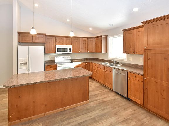 Easy, Convenient, and Comfortable Living Awaits! Welcome to 1720 34th Ave SE, a thoughtfully designed one-level townhouse located near the future Minot Country Club and its upcoming restaurant. This home combines modern convenience with stylish design, offering an open-concept layout featuring three bedrooms and two bathrooms. Step inside to find vaulted ceilings and low-maintenance hard surface flooring throughout the main living areas. The kitchen is a true highlight, offering generous cabinetry, ample counter space, and an island that provides a subtle separation from the living room. Adjacent to the living area, the sunroom serves as a cozy retreat—perfect for enjoying your morning coffee, catching up on your favorite shows, or diving into a good book. The owner's suite is designed for relaxation, featuring a private bathroom with a walk-in shower and abundant linen storage. An oversized walk-in closet completes this inviting space. Two additional bedrooms, a full bathroom, and a laundry room with a utility sink provide both comfort and functionality. Outdoor living is just as enjoyable, with a patio area and a fully fenced backyard enclosed by a 6-foot vinyl privacy fence. Single-level homes are a rare find in Minot, and properties in this prime location are highly sought after. Don’t miss your opportunity—contact your trusted REALTOR® today to schedule a private showing of this beautiful home!