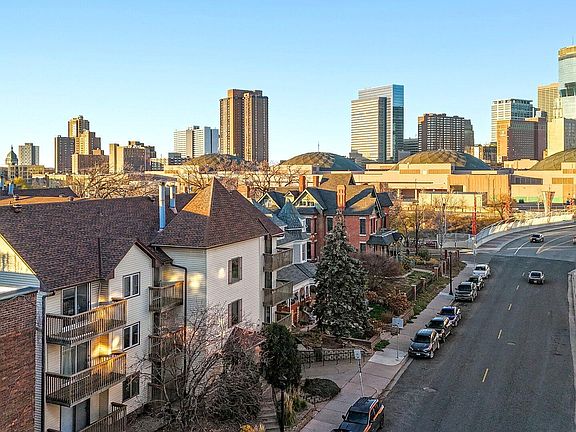 Prime corner unit with downtown views! This 2-bed, 1-bath, 930 sq ft condo features fresh paint, new carpet, & brand new toilet & stove w/central AC & forced air heat. Enjoy 2 balconies (one off the primary) & in-unit laundry w/internet covered in dues. Includes heated underground parking & a storage locker. Ideal location: walking distance to downtown shopping, restaurants, & vibrant Eat Street. On transit lines with quick access to I-94 & I-35. Perfect for urban living—leave your car or bike securely stored indoors & explore the city. Bring your cats (2 allowed), active rental license for future or investor potential. Schedule your showing today!