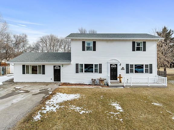Sellers offering $2500 toward rate buy-down or concessions! Nestled on a quiet street just minutes from downtown Minot, in Robinwood Estates, is this hidden gem with no direct neighbors across the street. Whether you are walking or driving, you are minutes from the Vardon Golf Club and Chophouse. This neighborhood is family friendly for walks and bike rides. It offers the neighborhood feel yet is outside city limits. Sitting on over a half acre, this 4 bedroom, 3 full bath home offers a spacious great room with 9 foot ceilings. This home would be ideal for entertaining, with dual access to the large deck and the fully fenced back yard. With the backyard facing east, imagine the beautiful ND sunrise from your deck. With the front yard facing west, you have the perfect view of the sunset. The kitchen offers a snack bar, stainless steel appliances, custom cabinetry, beautiful backsplash, and ample counter space. Off the front entry, you'll find another living space, dining room, or kid's play room. There's a main floor bedroom with a full bath adjacent with updated flooring,  and a laundry/utility/mudroom with access to the back deck. Heading upstairs, appreciate the fresh paint throughout. The master ensuite boasts a large walk-in closet, private step-in tiled shower and a 6 ft. soaker tub. Rounding out the upstairs is the 3rd full bathroom and bedrooms 3 & 4. This home has High Quality Packaged Terminal A/C with individual operated units in each room and a high efficiency boiler/radiant heat for super cost-effective heating and cooling year round!  With this home outside the city limits, you can appreciate lower taxes. The detached garage is a fully functioning garage (previous owners had set up for animals). The water heater was brand new '23, new washer/dryer '23, and new landscaping '23. New kitchen sink, garbage disposal, and light fixtures also in  '23. Newer LVP flooring in laundry and main bath, newer refrigerator and dishwasher. With nearly 2400 sq. feet of above ground living space, sprawled out on a beautiful, spacious and private lot- call your Realtor today and schedule a showing!