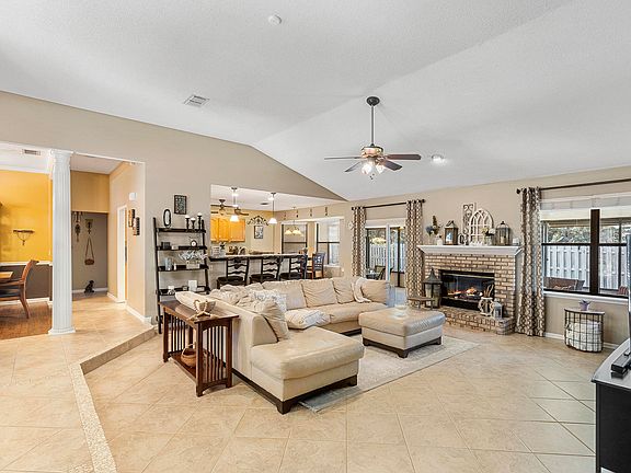 Fleming Island home on a large corner lot with beautiful mature trees and NO CDD fees. Long time owners have tastefully updated the home and meticulously maintained and cleaned so that it is move in ready. The kitchen has expanded granite countertops, breakfast bar, upgraded stainless appliances (including a wine fridge) and a built in desk space for homework or the family laptop. The remodeled open floor plan creates a great entertaining space and allows the family cook to be a part of the action. Enjoy holidays near the cozy wood burning fireplace. Screened and covered lanai is an extension to the living space and can be a perfect place to watch a show or sit and sip your favorite beverage overlooking the private fenced backyard & open air.