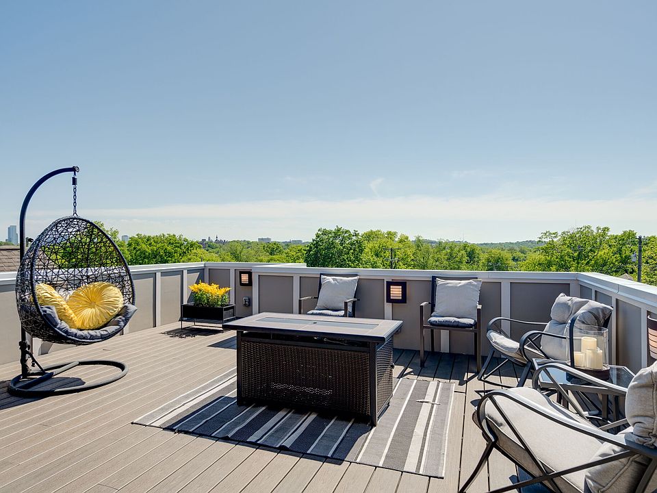 Walk-in closetGas stoveFenced backyardInviting open layoutAmple storageRemarkable bonus roomStunning rooftop deck