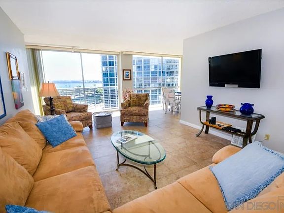 Welcome to our stunning one-bedroom, one-bathroom unit located in the beautiful Coronado, CA. Enjoy breathtaking Bay Views from the comfort of your own home. Stay active with access to our tennis court, gym, and pickleball courts. Take a dip in our refreshing swimming pool or take a short drive to the nearby military base. With convenient proximity to restaurants and shops, you'll have everything you need right at your fingertips. This short-term furnished rental is the perfect place to vacation. The unit is equipped with new windows, new flooring, electric power shades, and high-end appliances including a washer/dryer. La Sierra Tower is a highly sought Coronado Shores tower due to the close proximity to the Hotel Del. Amenities include pools, tennis courts, gym and Beach Club. Rates vary depending on length of lease and time. The condo is not available for a summer rental.