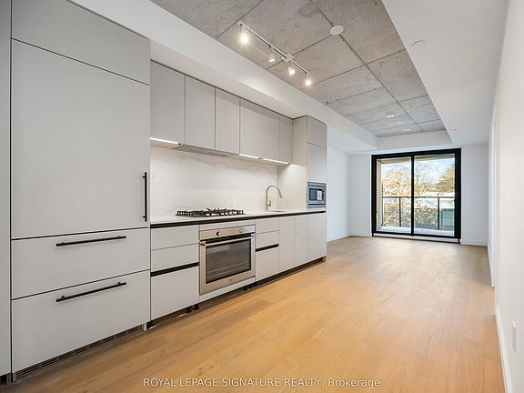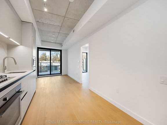 Welcome to Unit 420 at Leaside Common - This never-lived-in 2-bedroom + den, 2 full bath condo combines sleek design with everyday comfort. You'll love the bright, open-concept layout with 9-ft ceilings, exposed concrete ceilings, and floor-to-ceiling windows that flood the space with natural light.The modern kitchen is a total showstopper: quartz counters, a gas cooktop, premium built-in appliances & under cabinet lighting. The den makes a perfect home office, while the bedrooms and bathrooms offer premium finishes, hardwood floors, a deep soaker tub, and a stylish glass-enclosed shower. Step onto your quiet south west-facing balcony, complete with a gas line for BBQs - ideal for golden sunsets, relaxed evenings, and outdoor dining. All of this in the heart of Mount Pleasant East, just 1 minute from the upcoming Leaside Station (Eglinton Crosstown LRT) - connecting you to Line 1, Line 2, UP Express, and GO Transit. Walk to Summerhill Market, Sophie's, Piano Piano, Mayrik, Whole Foods, and more. Minutes to top private schools, Sunnybrook Hospital, and everyday conveniences.Top-floor privacy. Modern luxury. Unbeatable location.Welcome to life at Leaside Common!