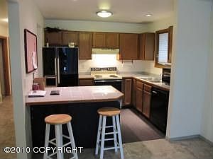 Spectacular South Anchorage town house with massive potential and mountain views! Quiet fenced back yard with storage shed that backs to Klatt Elementary School. 2 large bedrooms with walk-in closets, vaulted ceilings, 2 car garage, NO HOA Dues, this is a MUST SEE!