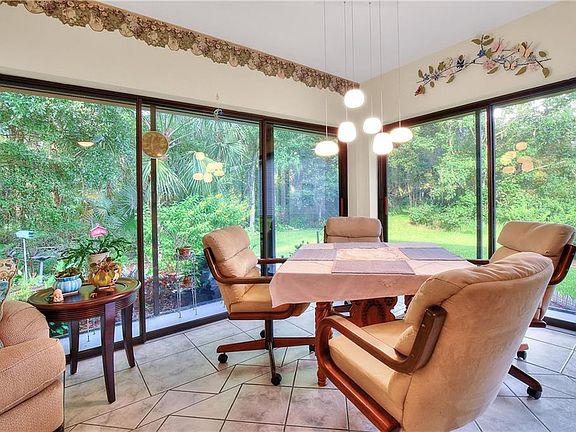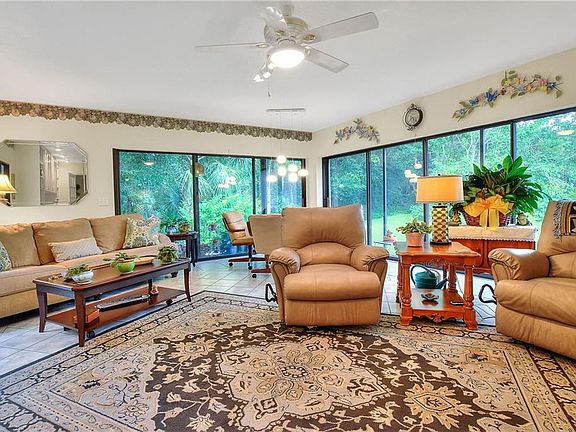 Fantastic remodeled home with so much space---and a large family room addition with floor to ceiling windows and wooded view of a very PRIVATE back yard !! The 20x20 family room features ceramic tile, electric fireplace, sliding doors that pocket on two sides with a perimeter sidewalk fully screened---it lets the outdoors come inside !! Other updates include: recently remodeled kitchen with wood cabinets, granite counters, newer appliances, marble backsplash & undercounter lights; hall bath quartz vanity; 2 CAR GARAGE with newer garage door & screen and two walls of cabinets for storage; gutters, double pane windows, attic pull down stairs, computer controlled irrigation and a solar tube. The separate dining room and the living room are both large enough to accommodate all your furniture and there is a separate office space or bonus area..great for so many things. The two bedrooms offer a split plan and the master bath has dual sinks and large shower. New a/c system in 2013 and washer & dryer are included (and inside !). Colonnades is a 55+ community, gated for homeowner security and all lawn care, pool, clubhouse, fitness center, shuffleboard etc are included for the monthly HOA fee of $115. Spectrum is now included in the HOA offerings--high-speed internet and cable for a fee of $51.40 additionally.