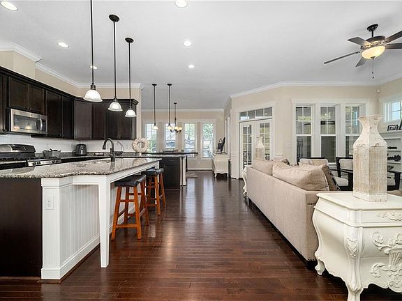 Custom Caramel Cottage model by builder Stephen Alexander. Open floor plan features a first floor bedroom with full bath, mudroom with closet and locker storage, and hardwood floors throughout. Gourmet kitchen has granite counters, stainless steel appliances, walk in pantry, and tons of counter space. Plenty of windows allows for lots of natural light in the living areas and the screened-in porch with EZ breeze windows is the perfect place to relax. You'll be sure to enjoy the backyard with its paver patio with firepit and swingset. Master bathroom features an oversized master shower with two shower heads plus garden tub. Home is located in an established neighborhood with a small park right across the street. Neighbors enjoy many activities together throughout the year including corn hole group, Halloween parades, bunco, book club, food trucks, garage sales, and more!