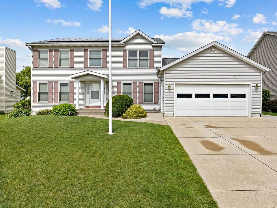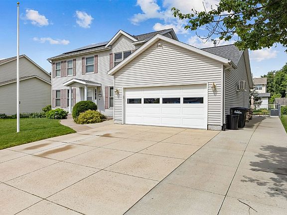 WOW! A lot of house and features for the money. Beautiful 3 BR 2-story home has solid wood work and doors throughout. 2 full baths and 2 half baths. Large kitchen with breakfast bar and all appliances included. Kitchen opens right into the family room with built-in cabinets/shelving and woodburning fireplace. The sliding doors off the kitchen lead you to the patio area and fenced back yard. Nice storage shed can store your lawn & garden tools. There is a first floor laundry room as well as a laundry room in the basement too. Primary BR has two very large closets and a large primary bath features double sinks, shower and tub. Updated second floor main bathroom includes beautiful tiled tub surround. Lower level has a large rec room area, unfinished area with lots of storage and a half bathroom. 2 car garage plus a 1 car tandem equal 3 car garage. Garage has a heater unit as well as an air conditioner unit, tons of storage cabinets, and garage door in the back opens up to the patio/back yard. Home features a water pressure system for those who want a powerful shower experience. Solar panel system was installed in 2024 by Pure Light Power. Convenient location to shopping, restaurants, schools, walking trails, biking trails and so much more! Home is well maintained and ready to move into! Do not miss out on this one.