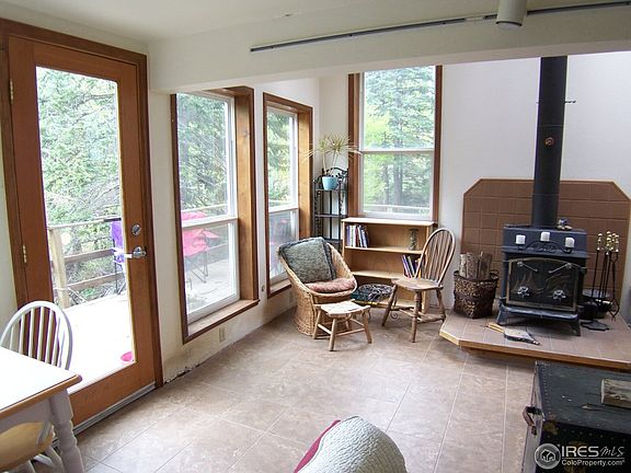 Cozy mountain home on property with seasonal stream. Vaulted ceilings with a large bedroom upstairs. Bathroom was just remodeled. Living room has free standing fireplace and lots of windows. Lovely wrap-around deck and fenced yard for pets. Great location for hiking, biking and skiing. 10 minutes north of Nederland and 30 minutes above Boulder.